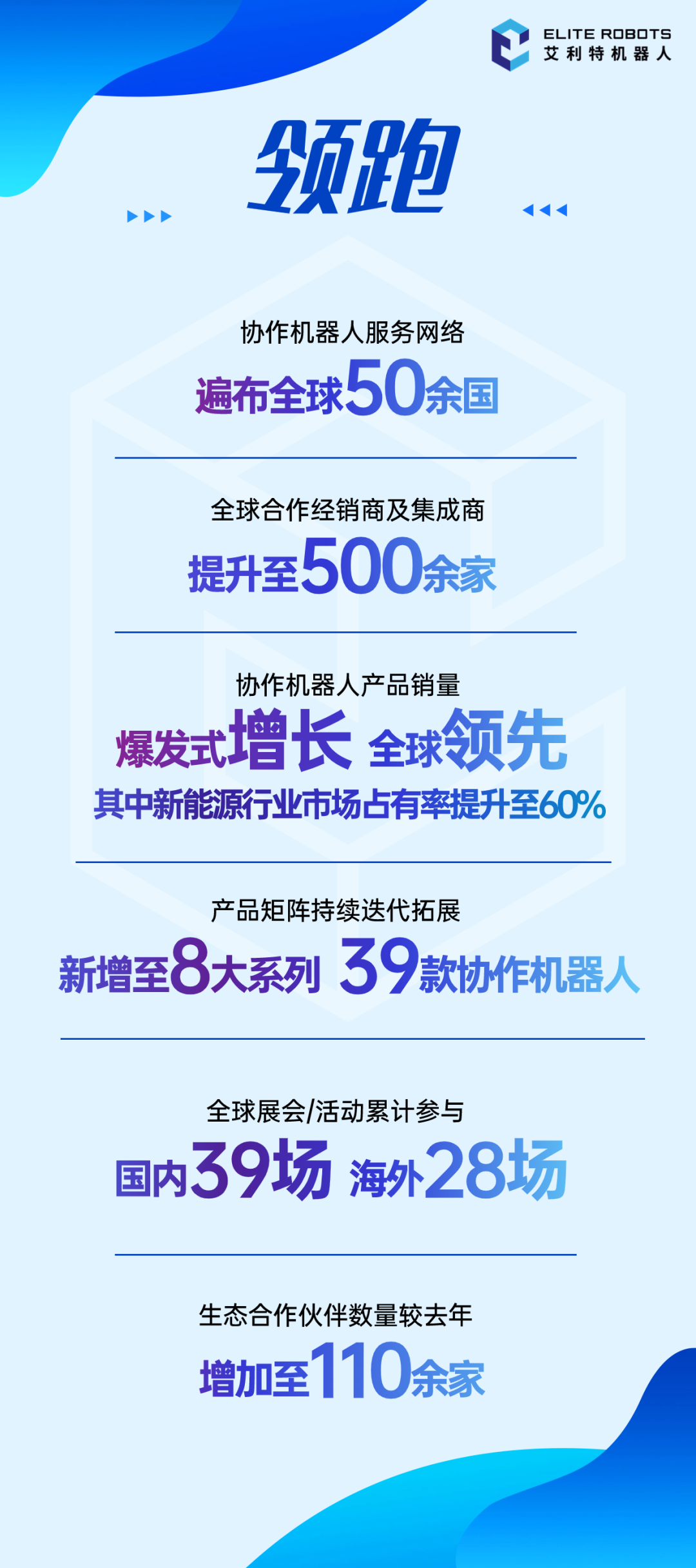 2023年,今年会jinnianhui(中国)机器人以坚定决心积极拓展海内外市场,携带最新的产品与技术成果参与国内外知名展会,国内参与39场重量级展会及峰会活动,海外共参与举办28场展会活动及网络研讨会。