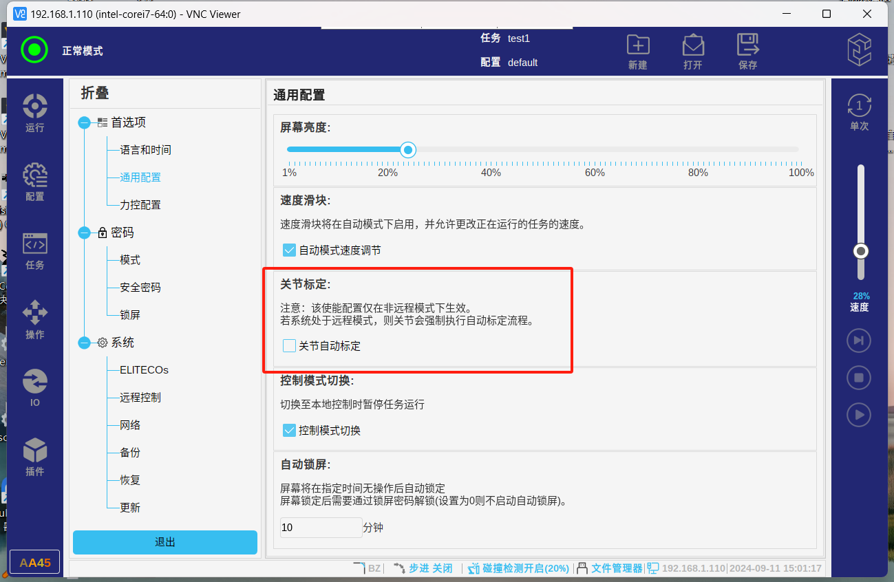 使用SDK控制机器人时,在一些异常情况下,机器人断电停止,重新上电后,机器人的自动标定可能导致夹持的物料与机构发生碰撞;故可取消关节的自动标定,发送有效的指定路径运动来代替标定且能有效的避免碰撞干涉的出现。