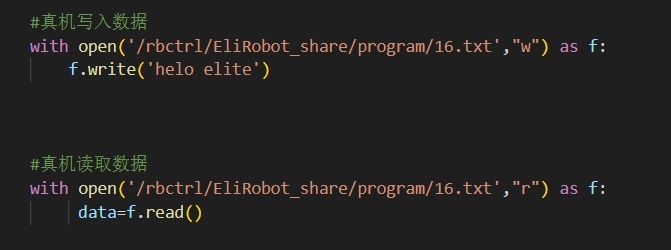 针对仿真系统,读写的文件直接位于 EliServer 文件夹下,可以直接使用类似以下代码: