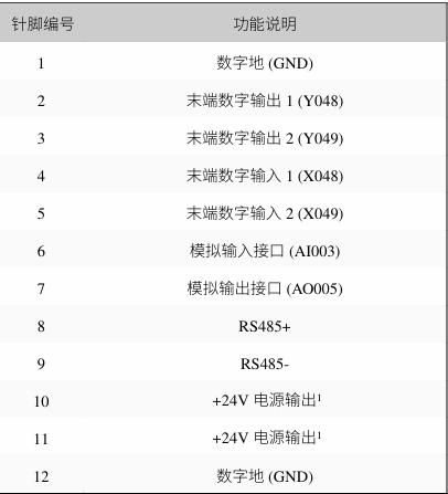 力传感器的线可直接接在末端IO上,下图是末端IO的对应的针脚。力传感器通常需要接线24V,0V,RS485+,RS485-。