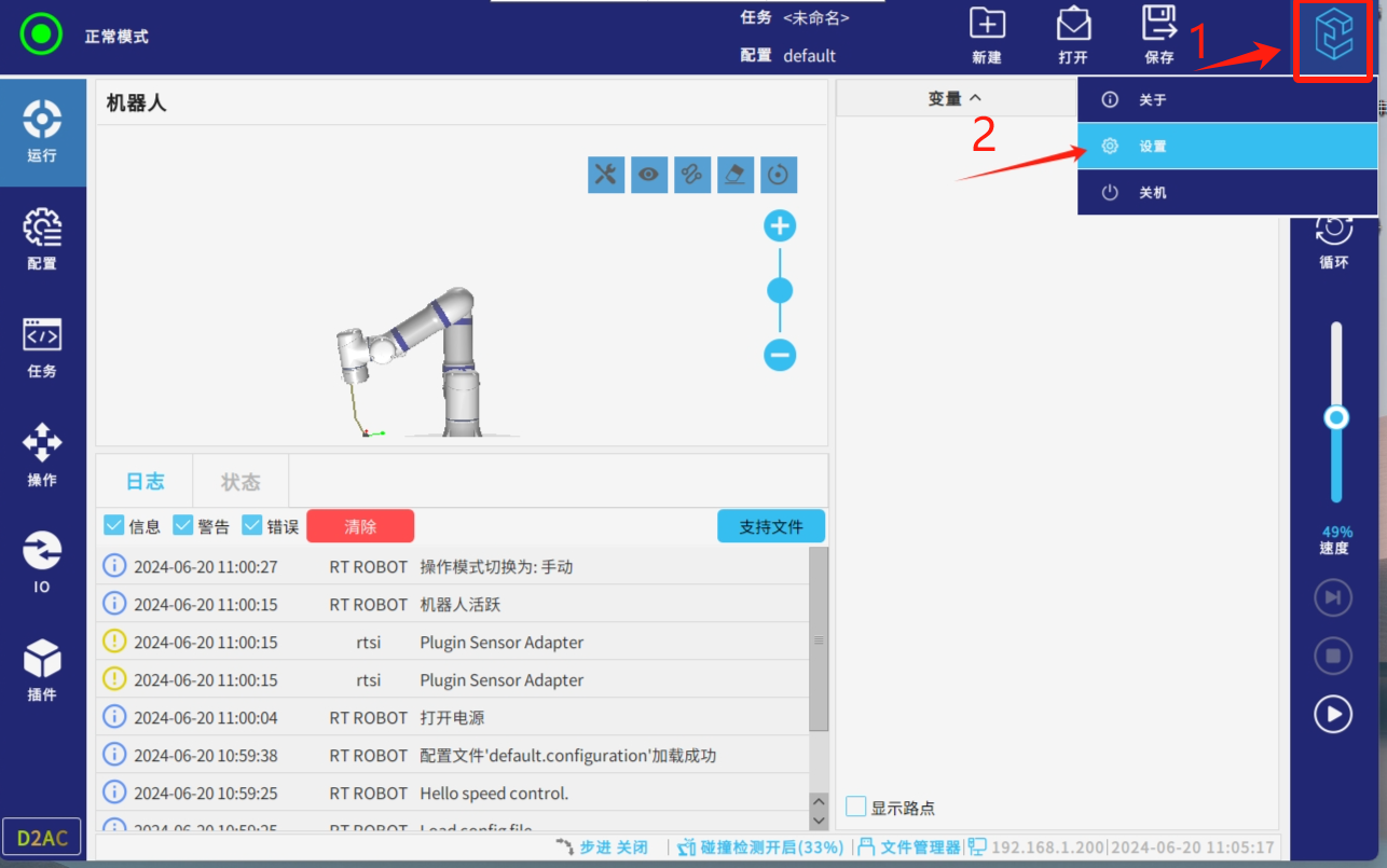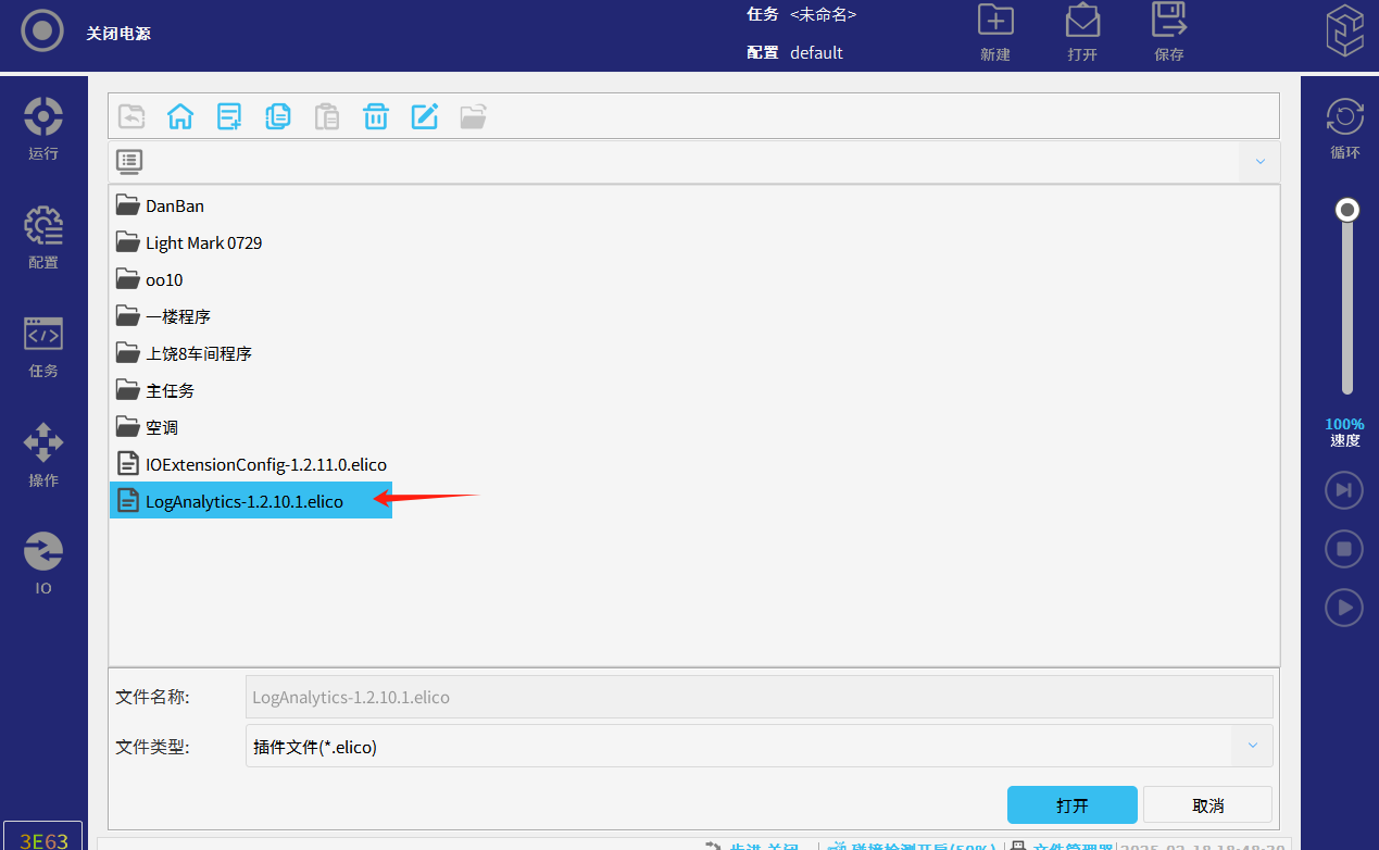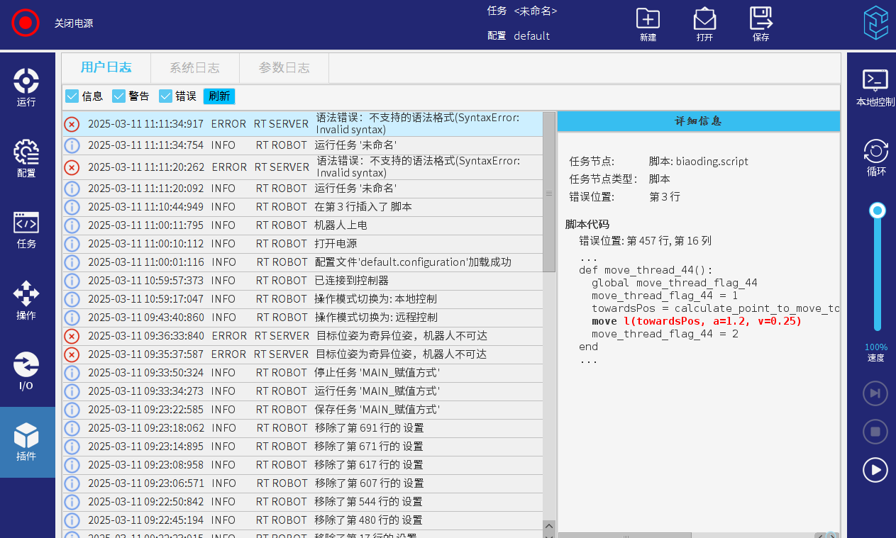 ● 点击示教器屏幕左侧底部插件按钮,再点击“日志分析“进入插件界面