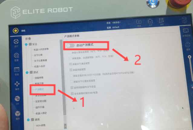 (1)进入专家模式,选择”产测模式” ,并点击”启动产测模式”,如下图。