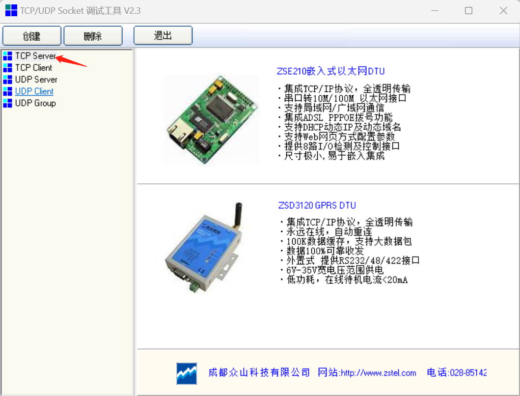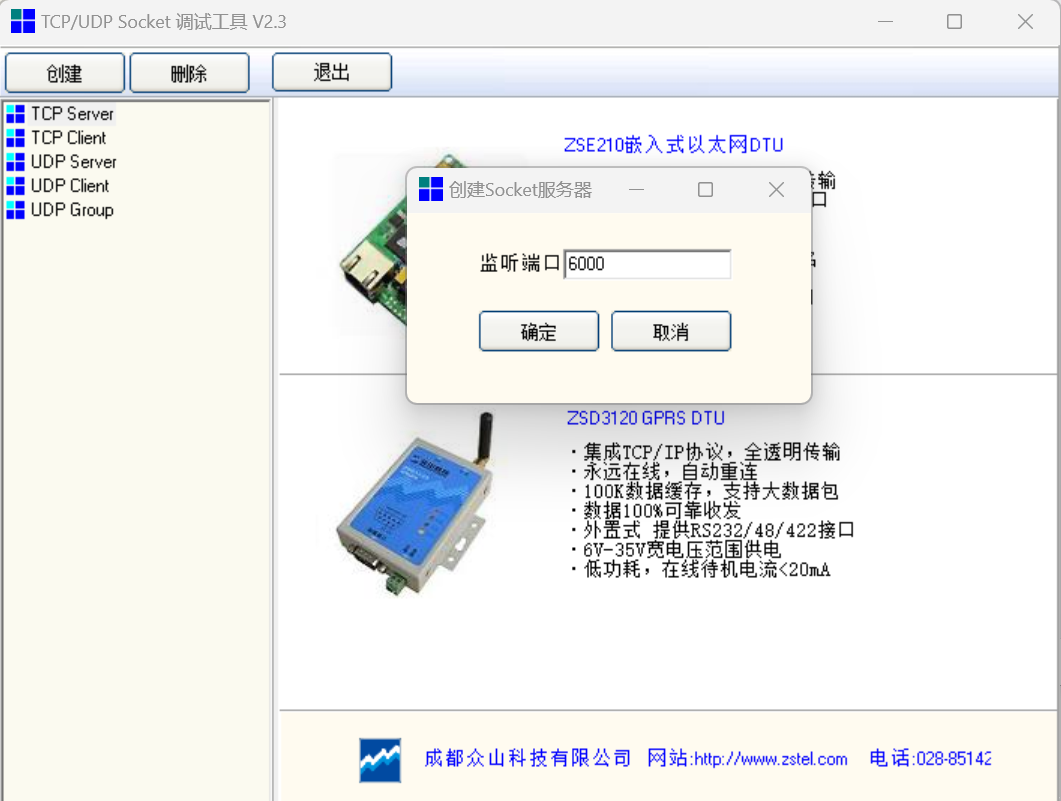 2.7 打开通讯助手,创建服务器