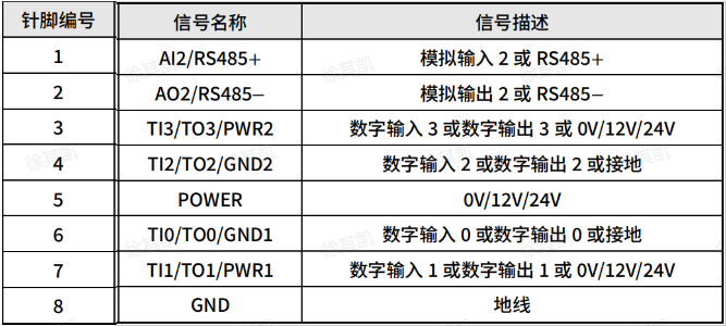 接线方法:如下图双针模式1接线,将电源线(5)与TI3/TO3/PWR2线(3)连接,接地线(8)与 TI2/TO2/GND2线(4)连接。