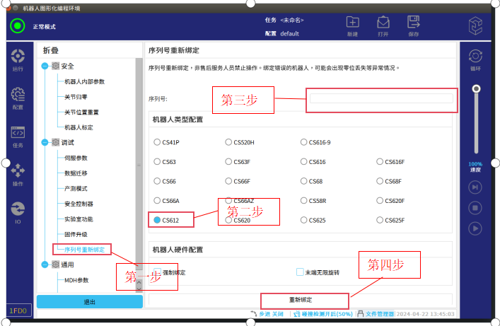 2.2.4进入图-15界面后按照图-15步骤进行机器人序列号绑定操作。